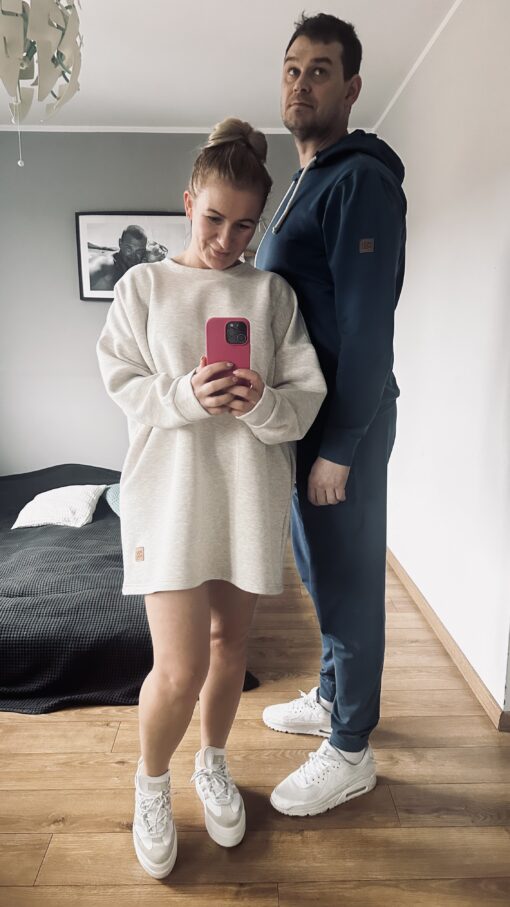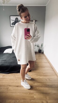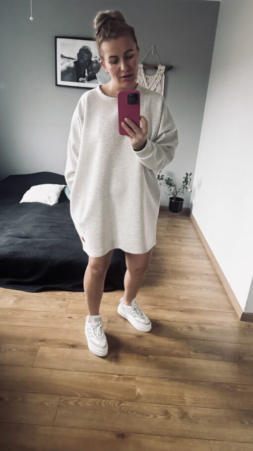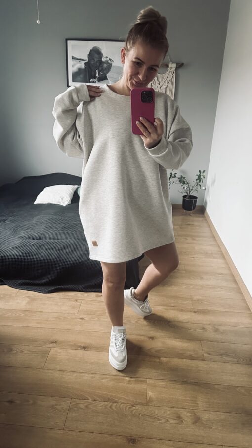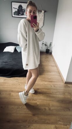 Cudownie cieplutka sukienka uszyta z dresówki drapanej, która daje poczucie otulenia i komfortu. Tkanina jest miękka, zawiera dodatek elastanu, wystarczająco , aby tkanina pracowała z nami, kiedy aktywnie spędzamy czas. Sukienka jest obszerna, idealna do grubych rajstop lub leginsów. Posiada boczne kieszenie. Sukienkę polecamy wybrać w swoim rozmiarze. Jeśli jesteście wyjątkowo niskie (mniej niż 160cm) lub z kolei wyjątkowo wysokie (powyżej 175cm), prosimy o podanie wzrostu w uwagach, a my odpowiednio wydłużymy lub skrócimy dla Was sukienkę.